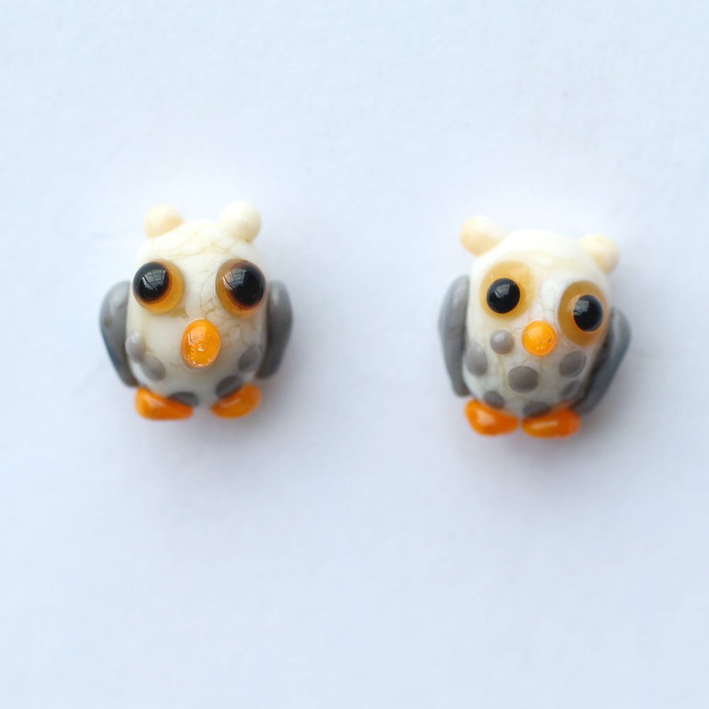 Divertidos pendientes hechos artesanalmente en vidrio con forma de búhos. Cierre de plata en dos opciones: rosca o presión